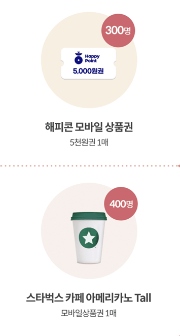 3등 스타벅스 카페 아메리카노 Tall(400명)
